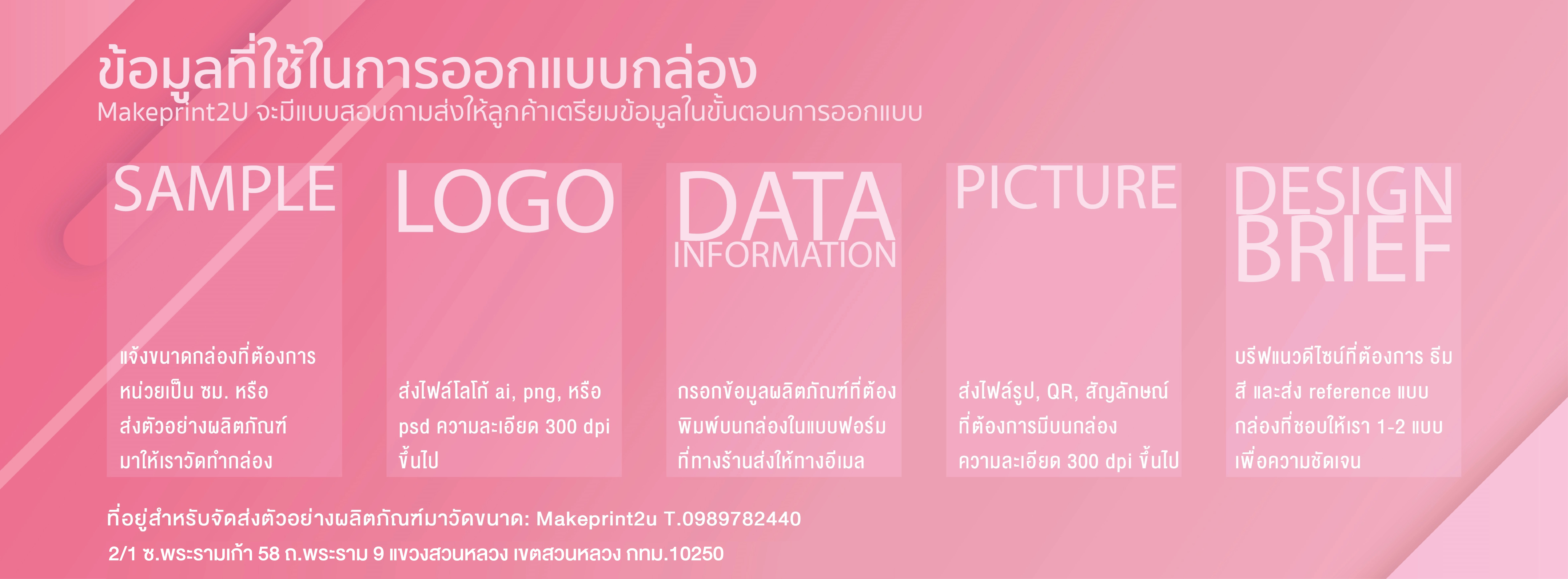 MAKEPRINT2U เราคือผู้ให้บริการด้านบรรจุภัณฑ์แบบครบวงจร รับออกแบบ รับผลิต กล่องบรรจุภัณฑ์กระดาษ กล่องแพคเกจจิ้งสวยๆ อาทิเช่น กล่องครีม กล่องสบู่ กล่องอาหารเสริม กล่องเครื่องสำอางฯ รับผลิตฉลากสินค้า สติกเกอร์ รับสกรีนบนผลิตภัณฑ์รูปแบบต่างๅ อาทิ สกรีนหลอดครีม สกรีนกระปุกครีม สกรีนขวดเซรั่ม เครื่องสำอาง ของพรีเมียมฯ เพื่อตอบสนองความต้องการของธุรกิจแบรนด์สินค้าของคุณอย่างครบวงจร ด้วยทีมงานมืออาชีพที่มีความเชี่ยวชาญประสบการณ์ในอุตสาหกรรมแพคเกจจิ้งโดยตรงซึ่งทำให้เราแตกต่างจากโรงพิมพ์ทั่วไปที่รับผลิตกล่อง อีกทั้งวัตถุดิบเกรดพรีเมียม คุณภาพสูง ถูกต้องตามเกณฑ์ เครื่องจักรที่ทันสมัย และกระบวนการผลิตที่มีมาตรฐาน เราสามารถออกแบบและผลิตบรรจุภัณฑ์แพคเกจจิ้งคุณภาพดีที่สุดในราคาย่อมเยาที่สุดได้หลากหลายรูปแบบ สามารถทำออพชั่นเสริมต่างๆ ได้ เราพิมพ์กล่องบรรจุภัณฑ์ระบบออฟเซ็ทด้วยเครื่องพิมพ์เยอรมัน รับสกรีนบนบรรจุภัณฑ์ระบบดิจิตอลด้วยเครื่องพิมพ์ญี่ปุ่น ขั้นต่ำน้อยเพียง 100 ชิ้น พร้อมทั้งยังมีบริการออกแบบฟรี เพื่อตอบสนองความต้องการในการเริ่มต้นธุรกิจ สร้างแบรนด์ รีแบรนด์ หรือขยายธุรกิจของคุณ เราดูแลลูกค้าด้วยความเอาใจใส่ เราให้บริการเต็มที่กับทุกงาน สนใจสินค้าและบริการของเรา ติดต่อเราเพื่อสอบถามข้อมูลเพิ่มเติม หรือปรึกษาได้เลย เรายินดีให้บริการ